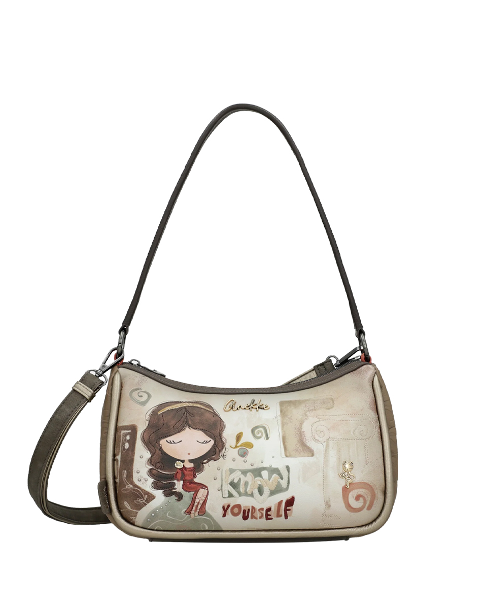 Сумка из коллекции Muse — воплощение античной эстетики в современном ритме города. Дизайн, вдохновленный классической Грецией, превращает аксессуар в личный артефакт, напоминающий о мудрости и вдохновении древних храмов. Удобный плечевой ремень обеспечивает идеальную посадку, позволяя вам оставаться мобильной в течение всего дня. Основное отделение на молнии дополнено внешним задним карманом для быстрого доступа, а также внутренними отсеками для мобильного телефона и ценных мелочей. Прикоснитесь к мудрости веков и станьте частью истории вместе с Muse.