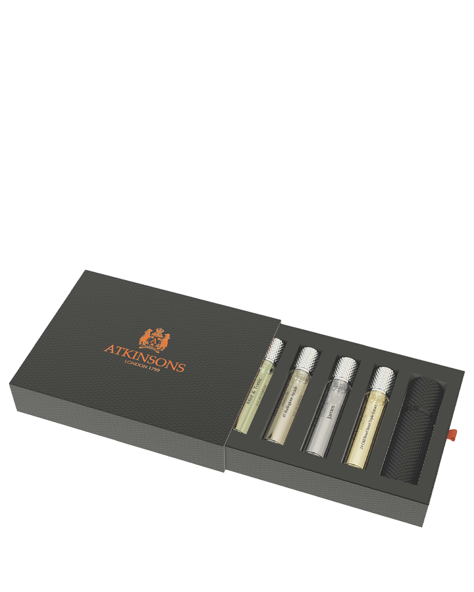 В набор входит: парфюмерная вода Mint and Tonic 10 мл + парфюмерная вода 41 Burlington Arcade 10 мл + парфюмерная вода James 10 мл + парфюмерная вода Pirates Grand Reserve 10 мл + Travel Case Holder Black.