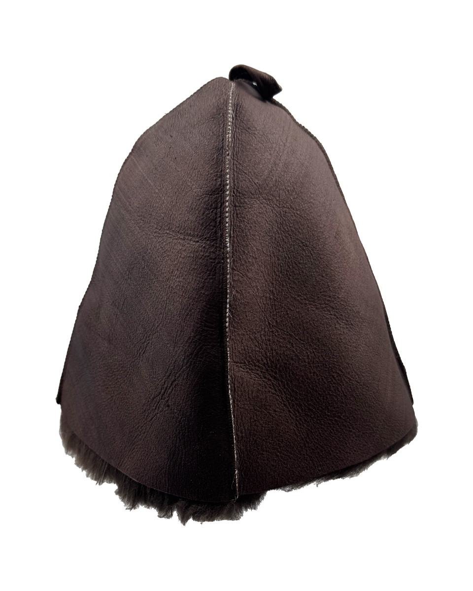 Овчина ценится за природную плотность и комфорт: она помогает бережно сохранять тепло и делает пребывание в парной более приятным. Шапка из овчины ощущается основательно и «дорого» — с первой примерки.