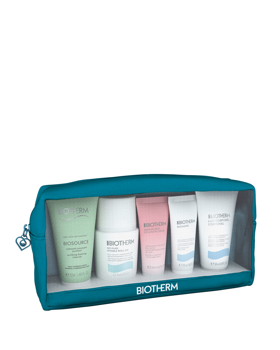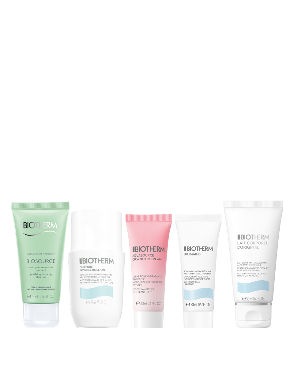 В набор входит: дезодорант-антиперспирант 75 мл + очищающее пенящееся средство для умывания 50 мл + Biomains 20 мл + Lait Corporel 50 мл + питательный крем Aquasource Cica 20 мл.
