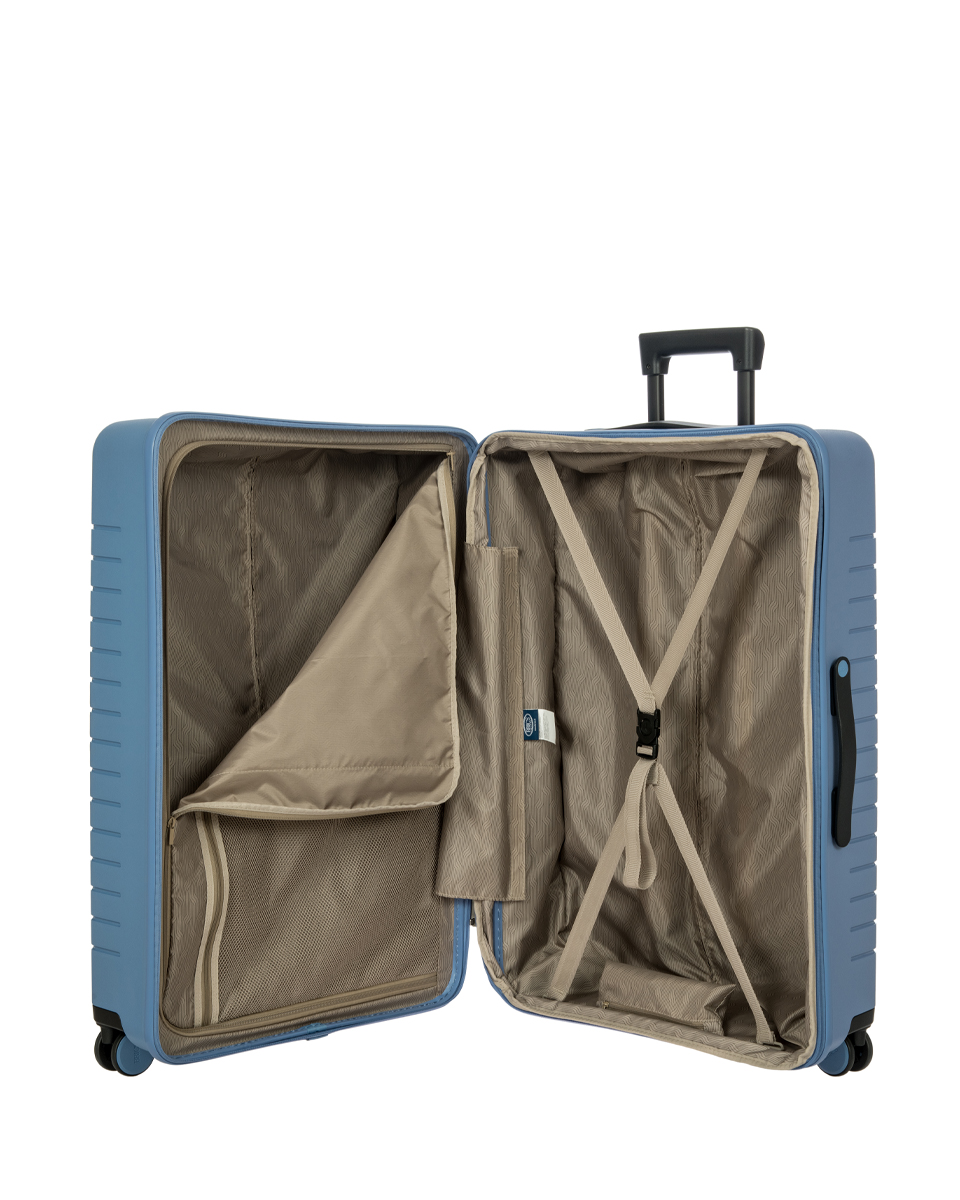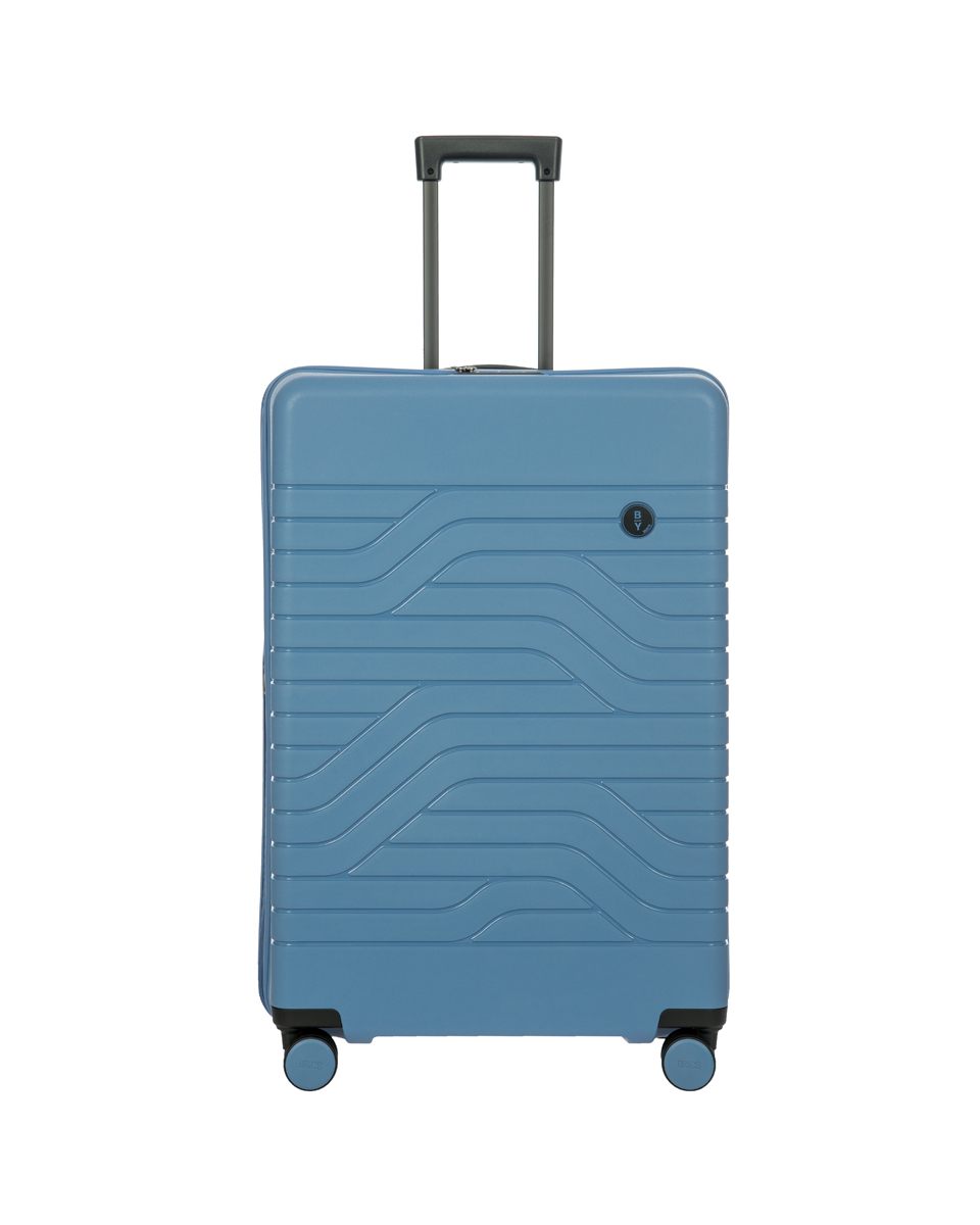 Чемодан Bric's - это пластиковый чемодан из новой молодежной коллекции B/Y( Be young be Bric's). Основной материал - это полипропилен, легкий, прочный и устойчивый к царапинам. Чемодан серии Ulisse сочетает в себе все необходимые новшества: USB-порт для подзарядки вашего телефона или планшета; застежка-молния с кодовым замком TSA, который для удобства расположен сверху; выдвижная адресная бирка; выдвижная 3-х ступенчатая тележка на кнопочном фиксаторе; 4-e обесшумленных ддвойных колеса, в цвет чемодана, вращаются на 360 °.