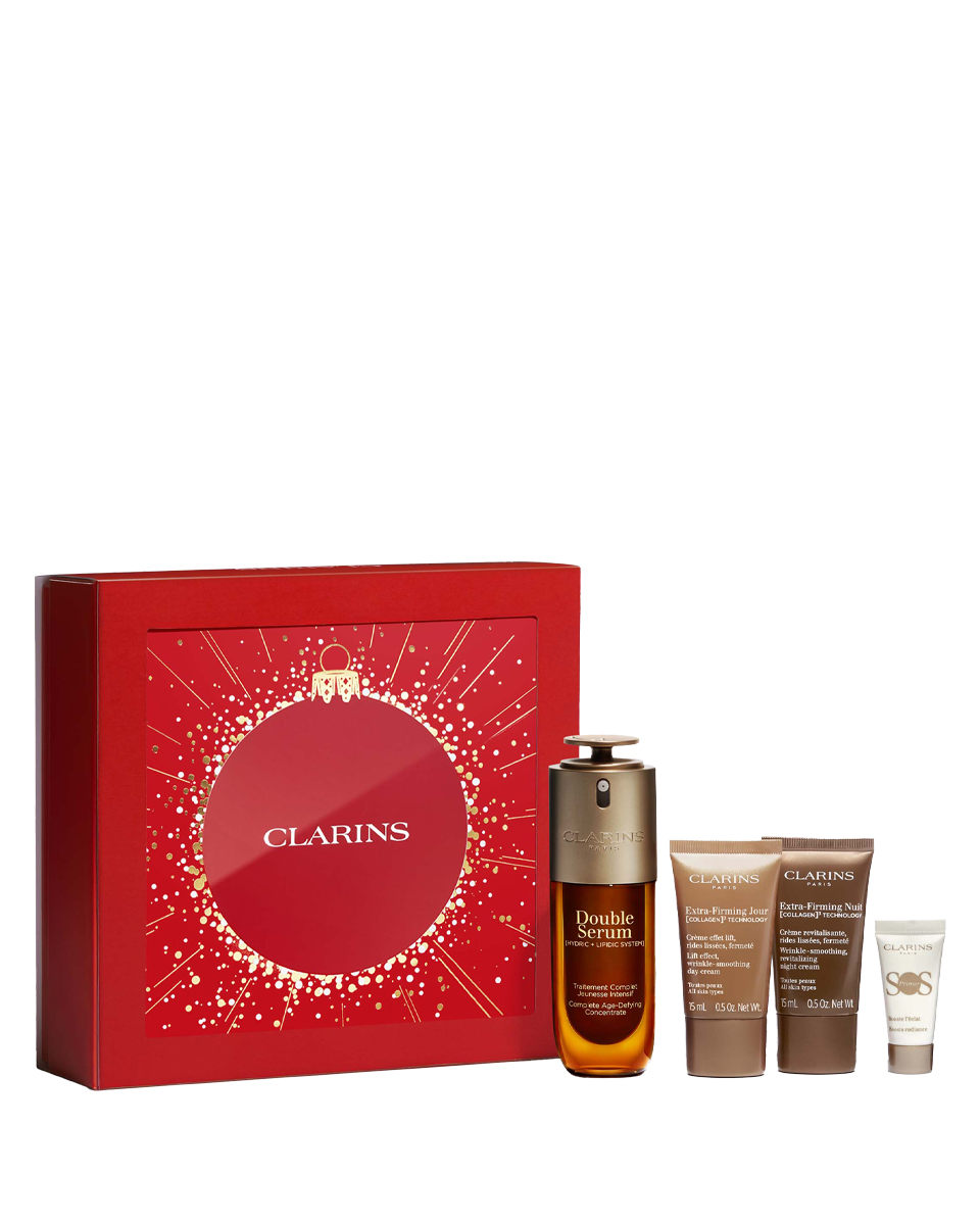 В набор входит: двойная сыворотка Essential Care 50 мл + укрепляющий дневной крем 15 мл + укрепляющий ночной крем 15 мл + база под макияж SOS Primer White 5 мл.