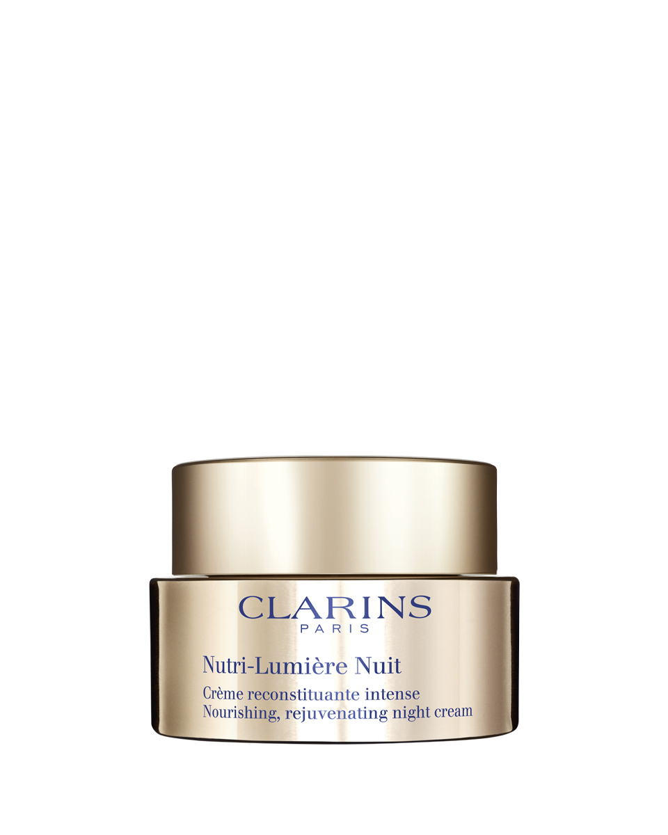 Лаборатории Clarins разработали пару мощных активных ингредиентов, которые возвращают коже свет. Органический экстракт цветов и эксин (активная молекула в плодах) из дерева конского каштана известны тем, что влияют на сеть микроэлементов. Этот бодрящий дуэт, являющийся результатом опыта Лабораторий Clarins, обеспечивает максимальное проникновение питательных веществ в кожу. Ваша кожа лучше питается и снова сияет. Ночной крем Nutri-Lumière Night Cream успокаивает кожу, бесконечно тая и наполняя ее энергией, идеально подходит для восстановления и питания кожи и придания ей сияния.