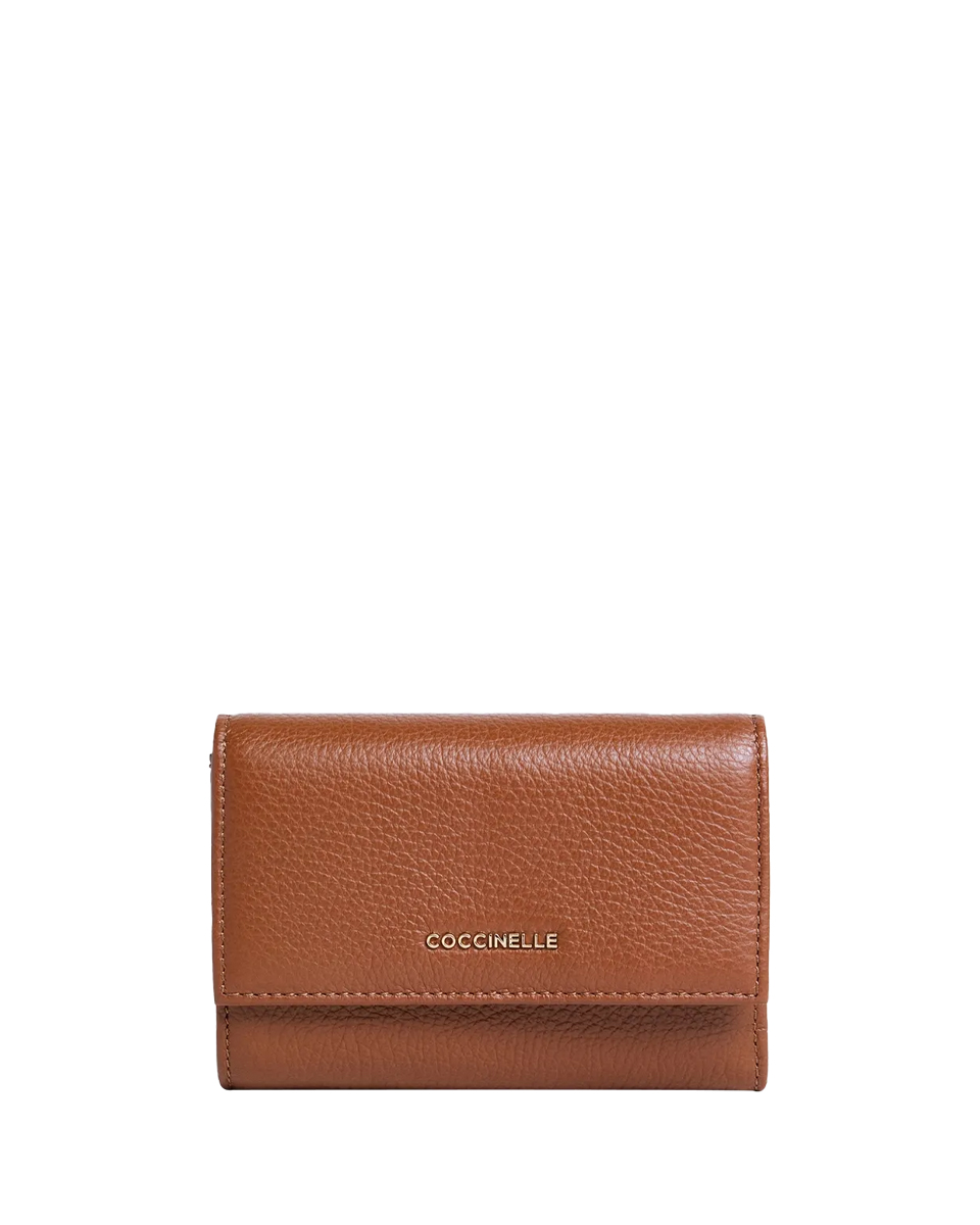 Этот кошелек из линейки Metallic с откидной крышкой украшен металлическим логотипом Coccinelle. Его продуманное внутреннее пространство позволяет удобно и аккуратно хранить все необходимое.