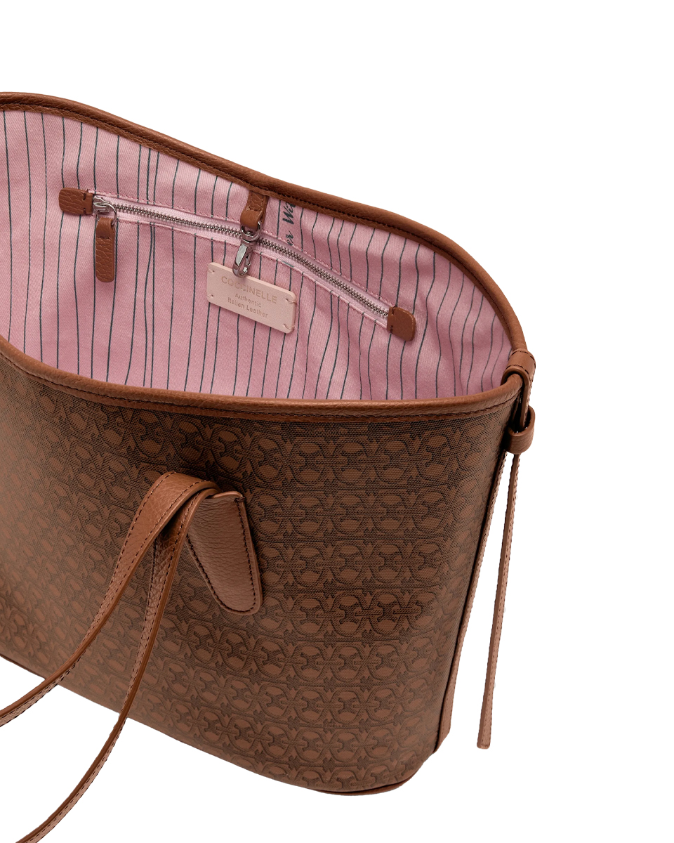 Новая сумка Never Without Bag-это шоппинг, способный сопровождать женщину в течение дня. Простой и женственный силуэт, смягченный мягкостью кривых и кожаными боковыми лентами, которые придают элегантность и женственность. Для ношения на плече или в руке благодаря двойной переносимости. Эта модель выполнена из ткани на полиэфирной основе, на которую наносится специальная отделка. Затем ткань проходит через определенный цилиндр, на котором выгравирован рисунок монограммы.