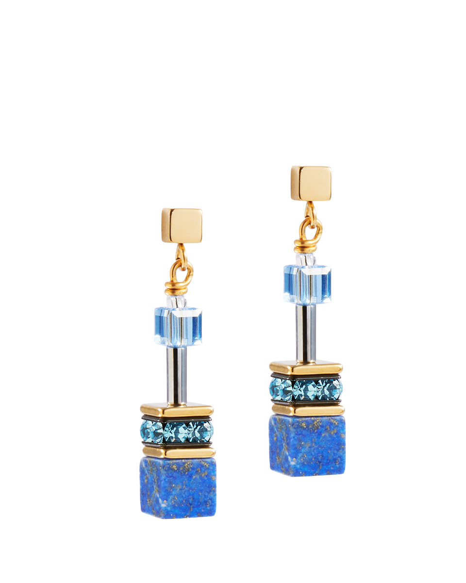 Классические, глубокие, неподвластные времени серьги GeoCUBE Iconic Precious earrings blue сочетают в себе мощную элегантность лазурита и сверкающие кристаллы Swarovski. Насыщенные синие тона символизируют спокойствие и силу, а драгоценные элементы из нержавеющей стали и золота создают роскошный контраст. Идеально подходит для создания стильных образов в современном стиле.