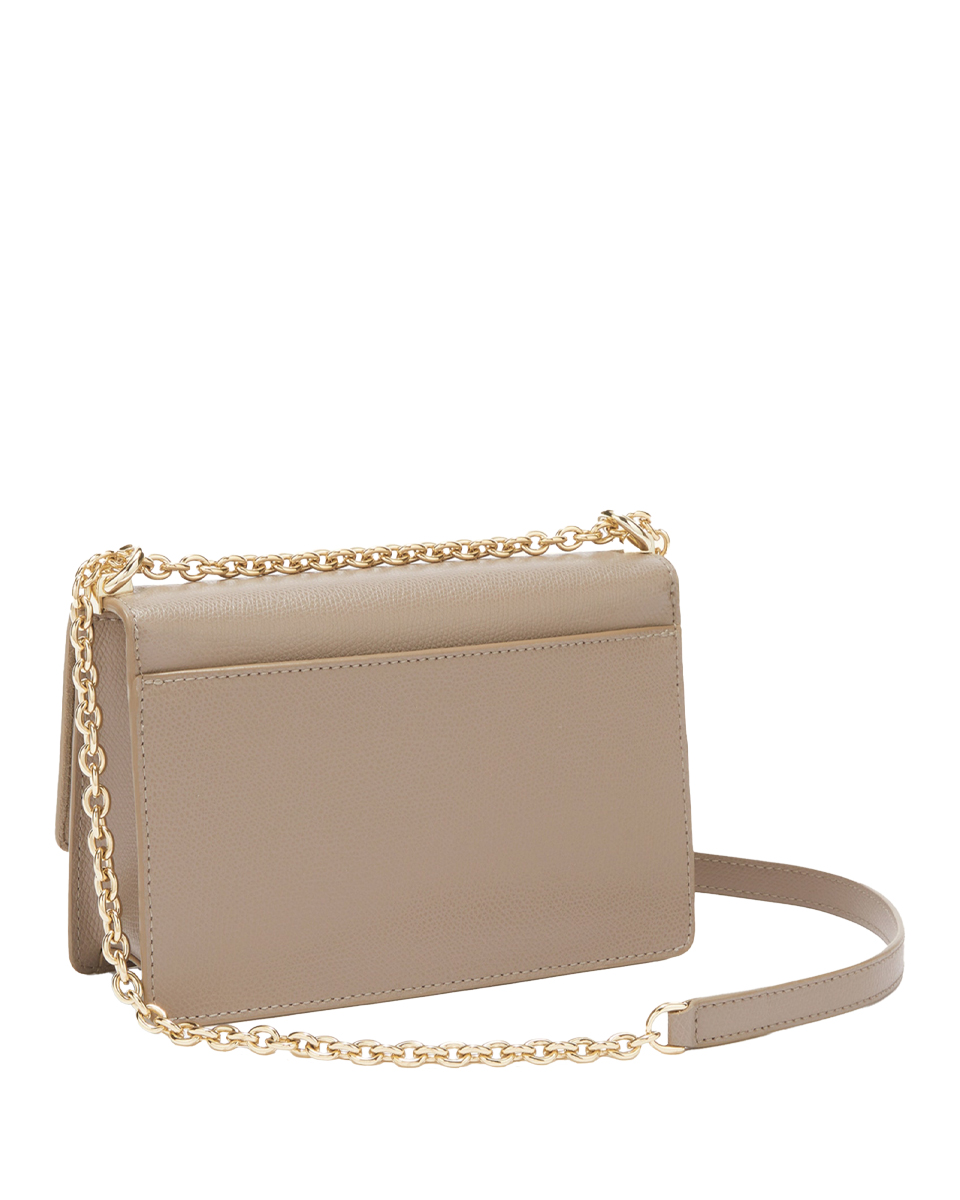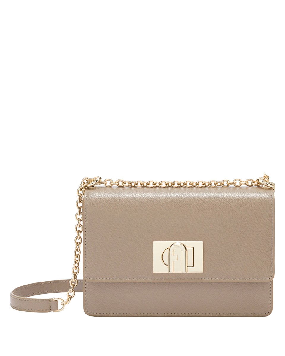Мини-сумка Furla 1927, выполненная из изысканной фактурной кожи, представляет собой стильный аксессуар, который можно носить через плечо. Она оборудована кожаным ремешком с вставками в виде цепочек, что придает ей изысканный вид. Особенностью этой сумки является металлическая застежка-турникет с логотипом Furla, делающая ее удобной и функциональной. 100% Кожа