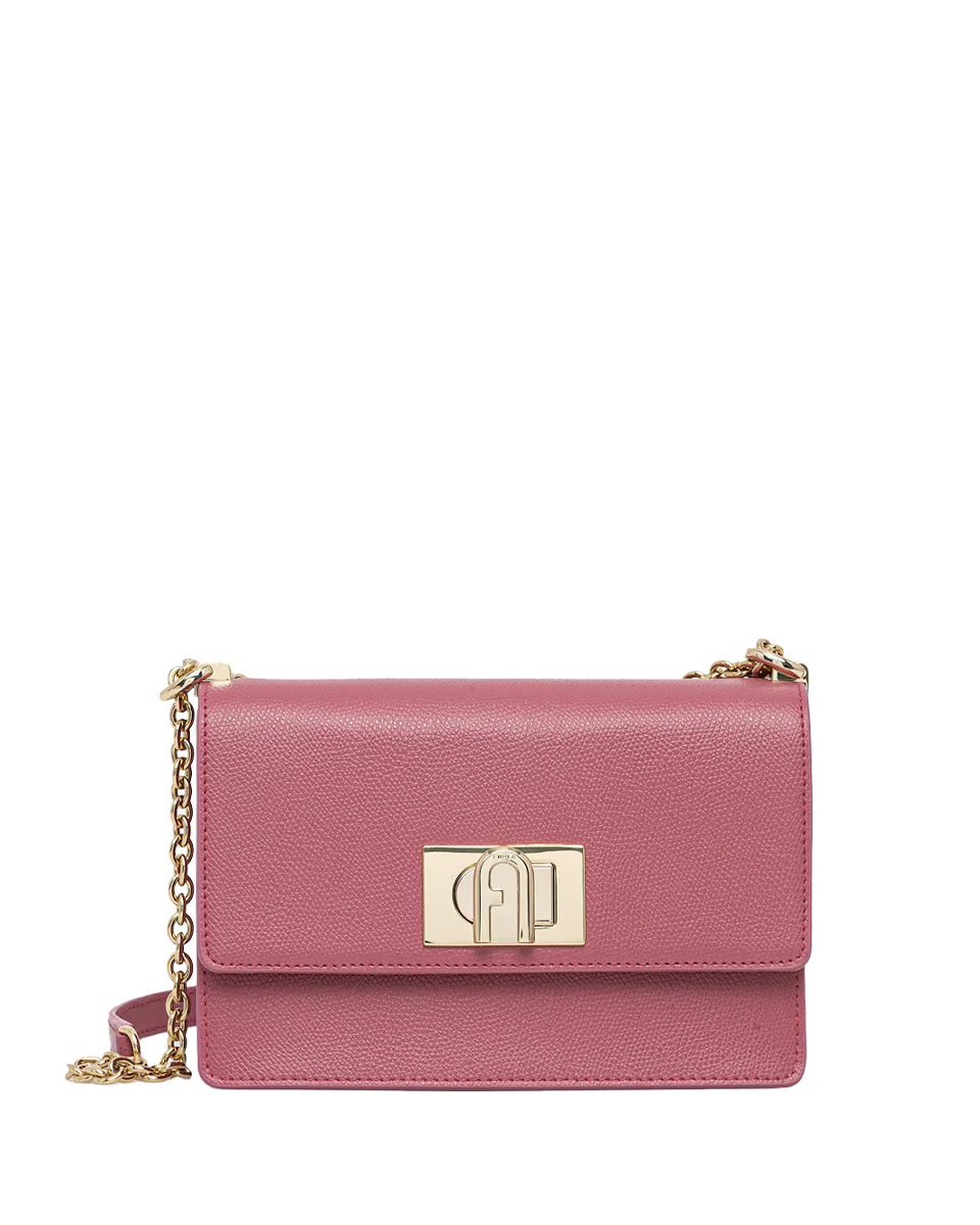 Мини-сумка Furla 1927, выполненная из изысканной фактурной кожи, представляет собой стильный аксессуар, который можно носить через плечо. Она оборудована кожаным ремешком с вставками в виде цепочек, что придает ей изысканный вид. Особенностью этой сумки является металлическая застежка-турникет с логотипом Furla, делающая ее удобной и функциональной. 100% Кожа