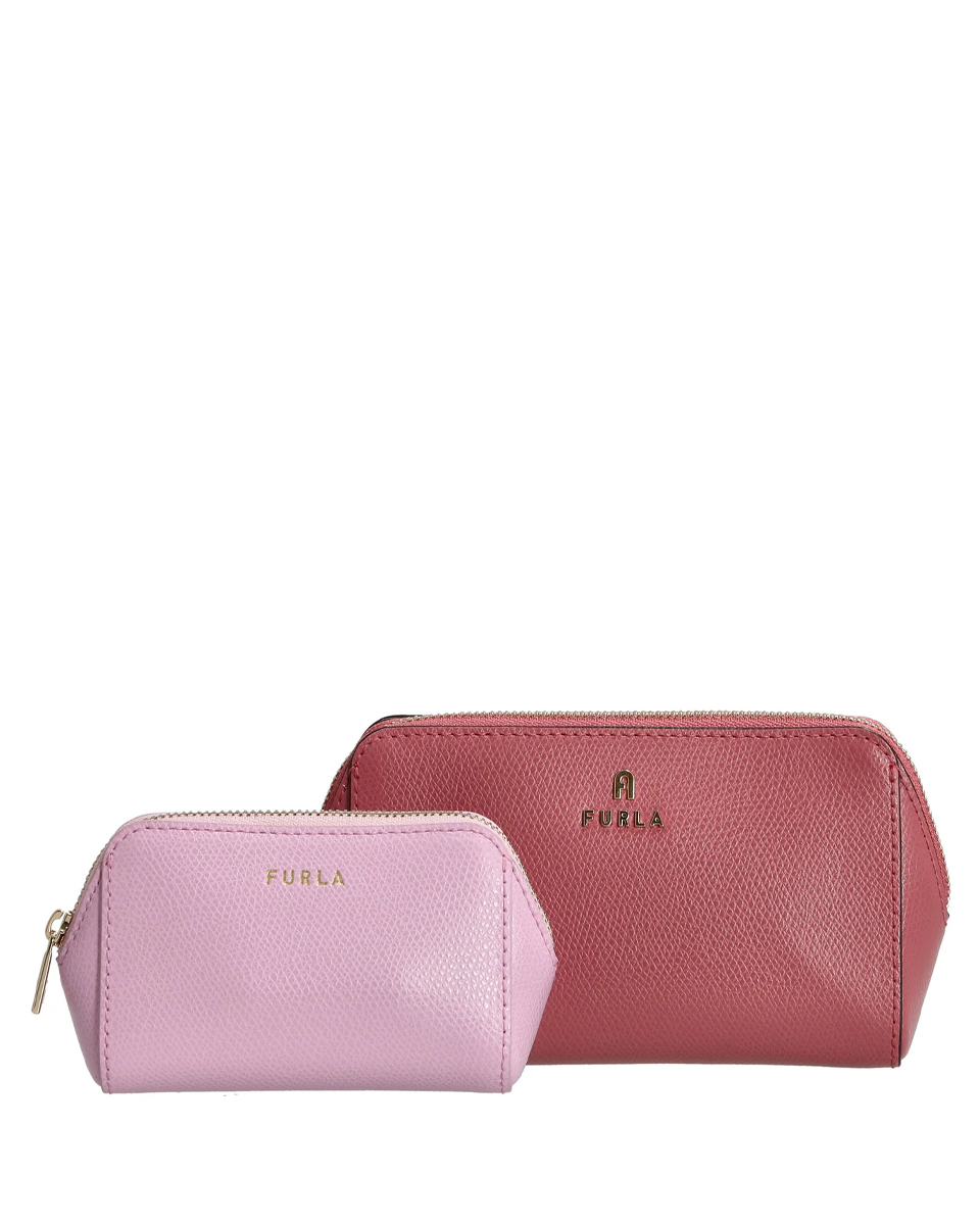 Этот набор из двух косметичек Furla Camelia, выполненных в контрастных цветах из роскошной кожи с тиснением и зернистой отделкой, является незаменимым аксессуаром благодаря своим практичным и компактным размерам. Спрячьте косметику и другие предметы первой необходимости в оба отделения и положите их в чемодан или дамскую сумочку, чтобы иметь удобный доступ к ним в дороге.