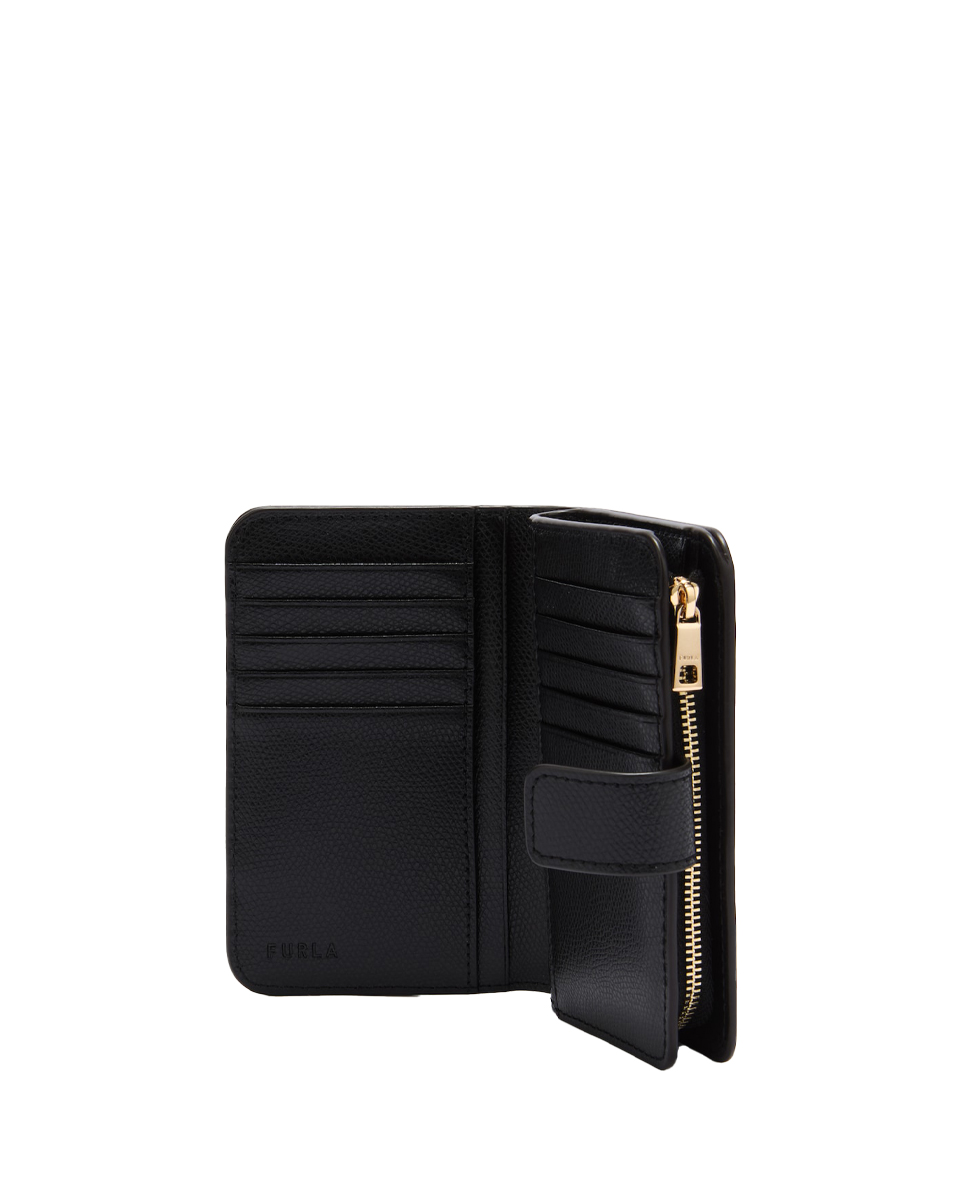 Кошелек Furla Camelia отличается минималистичным дизайном с книжным открытием. Изготовлен из тонкой гладкой кожи, определяемой скошенными углами и извилистыми линиями, это незаменимый аксессуар для хранения в каждой сумке. Компактный формат идеально подходит для организации банкнот, карточек и документов. 100% Кожа