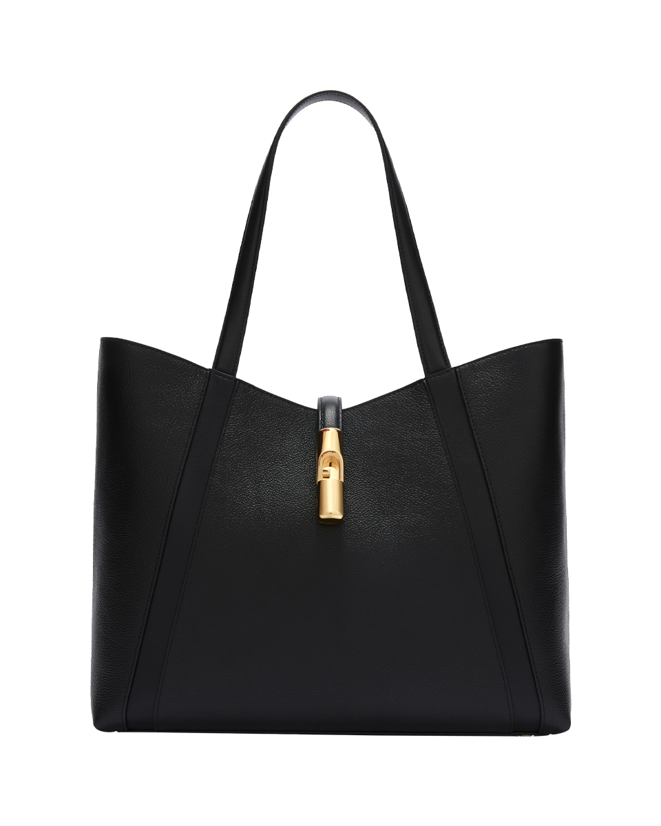 Вместительная сумка Furla Goccia из зернистой кожи, выполненная в горизонтальном стиле, отличается элегантным силуэтом, а детали из гладкой кожи придают ей универсальный и современный вид. В ней, украшенной уникальной цилиндрической фурнитурой с логотипом Arch и блестящей отделкой, достаточно места для всего необходимого.