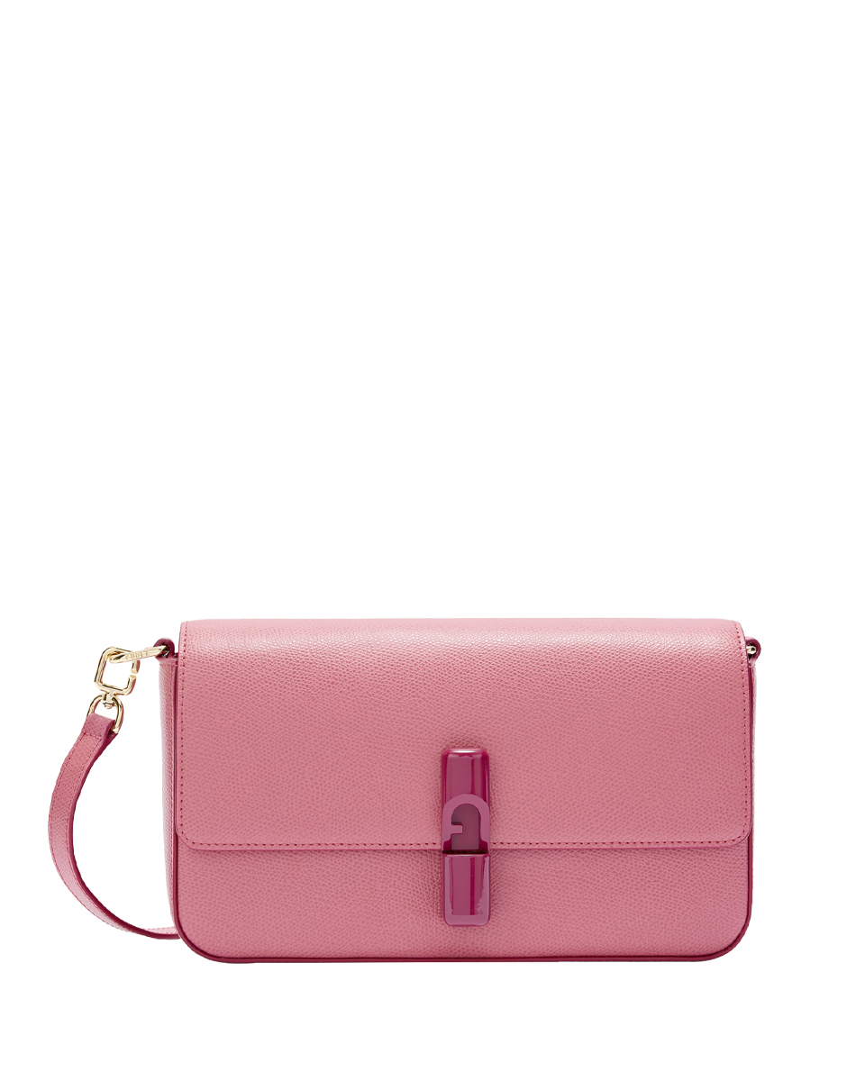 Модель Furla Iride отличается универсальным современным дизайном. Ее компактный силуэт, выполненный из изысканной текстурированной кожи, дополнен регулируемым и съемным плечевым ремнем, позволяющим использовать различные варианты оформления. Застежка на магнит украшена цилиндрической металлической фурнитурой с культовым логотипом Furla Arch.