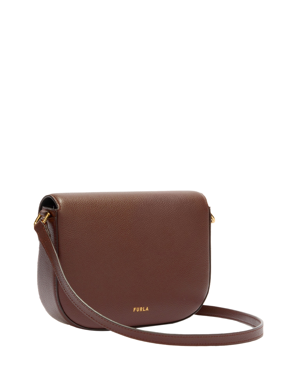 Модель Furla Moonlight, идеально подходящая для ношения через плечо и обладающая неподвластным времени очарованием, отличается оригинальным дизайном седла с мягкими округлыми линиями. Модель выполнена из тонкой кожи с тонкой текстурой, а ее компактный силуэт подчеркнут клапаном и застежкой на магнитную кнопку, украшенную культовым логотипом Sfera.