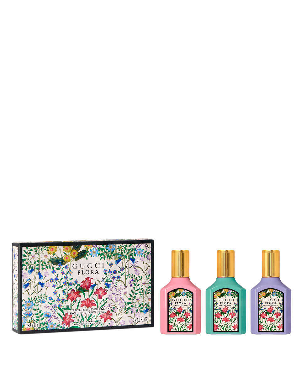 В набор входит: парфюмерная вода Gucci Flora Gorgeous Gardenia 30 мл + парфюмерная вода Gucci Flora Gorgeous Jasmine 30 мл + парфюмерная вода Gucci Flora Gorgeous Magnolia 30 мл.
