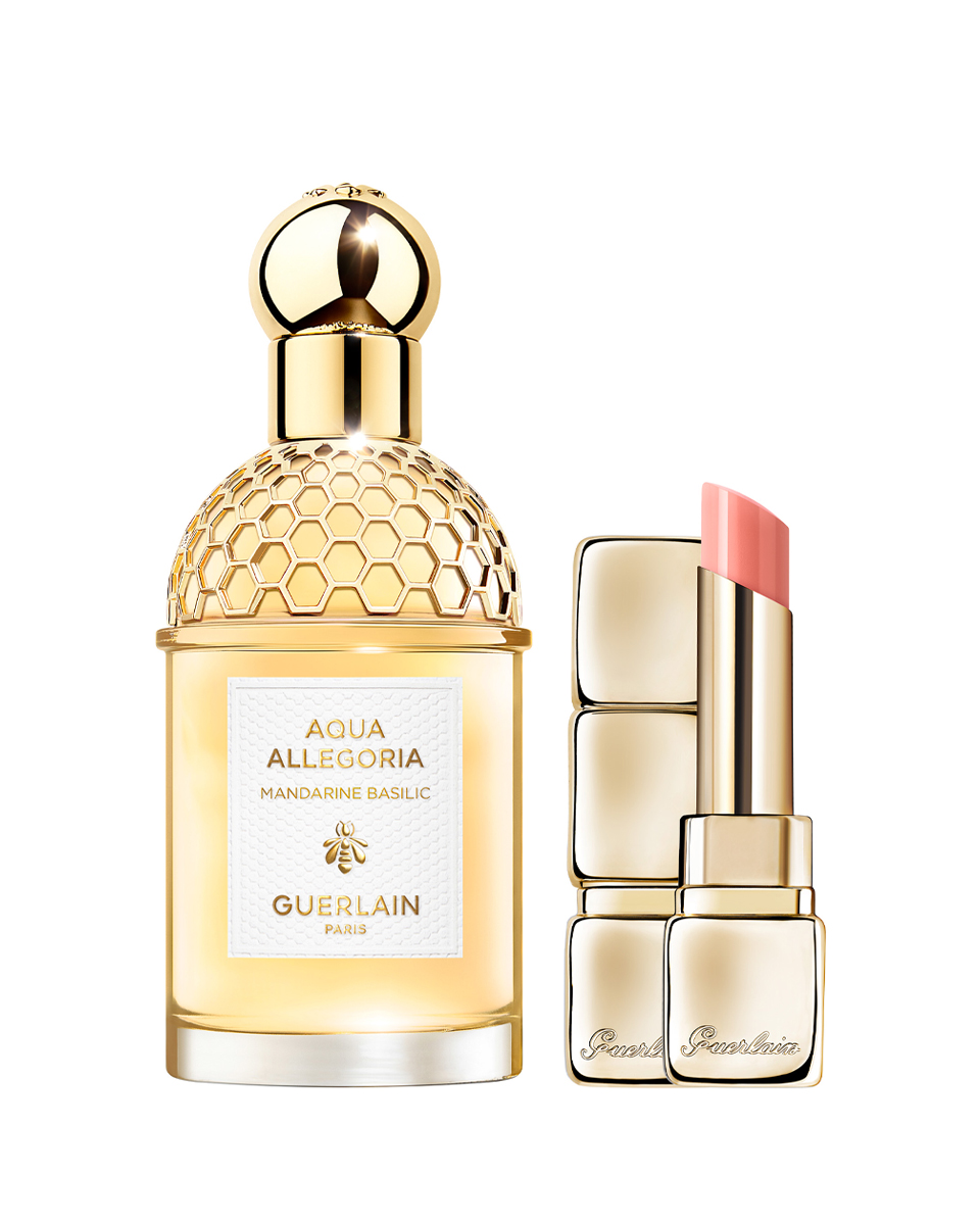 В набор входит: туалетная вода Mandarine Basilic Aqua Allegoria 75 мл + губная помада Kiss Kiss Bee Glow N° 309.
