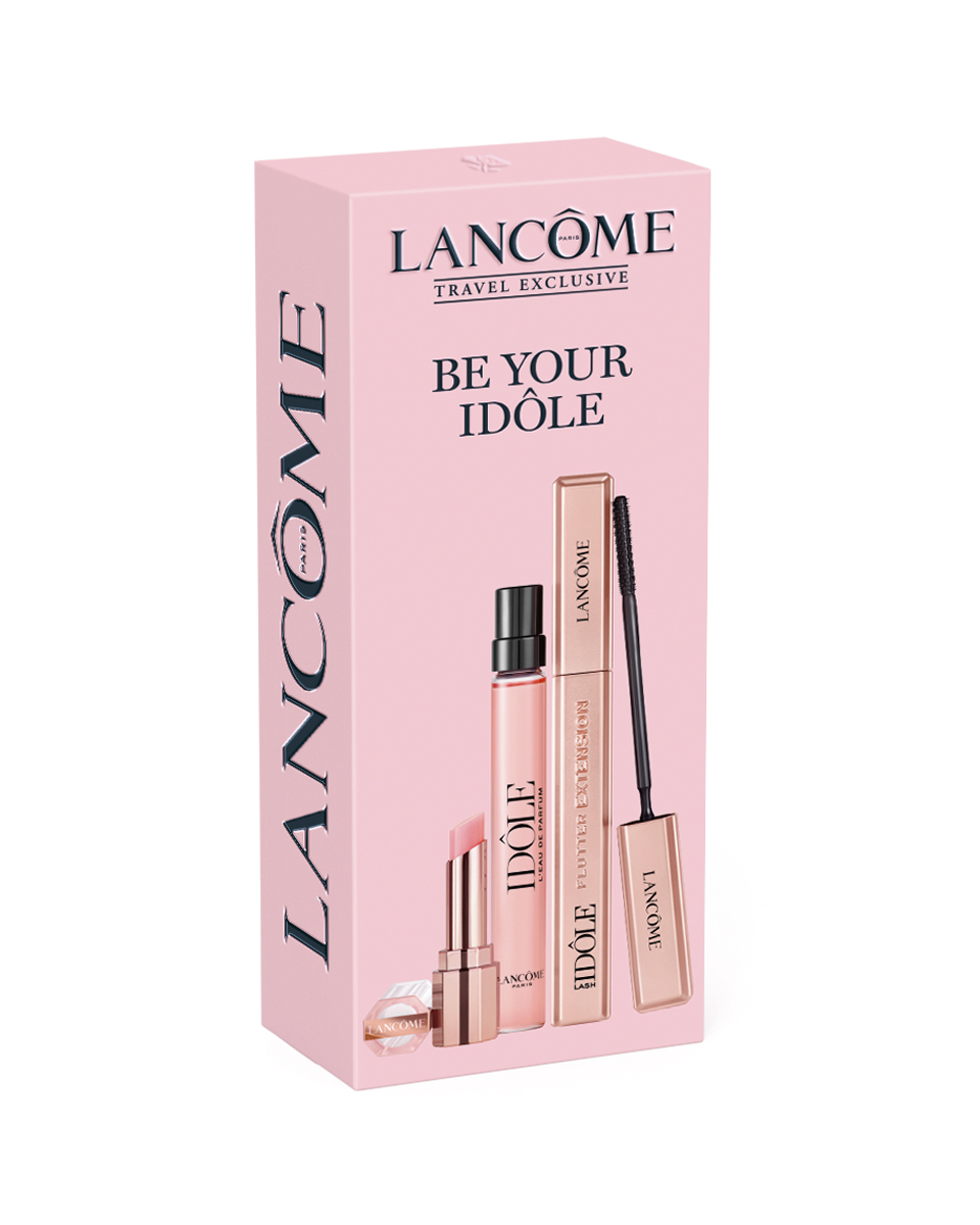В набор входит: парфюмерная вода Lancome Idôle 10 мл + тушь для ресниц Idôle Flutter Extension Mascara 01 + губная помада Idôle Butterglow Mini.