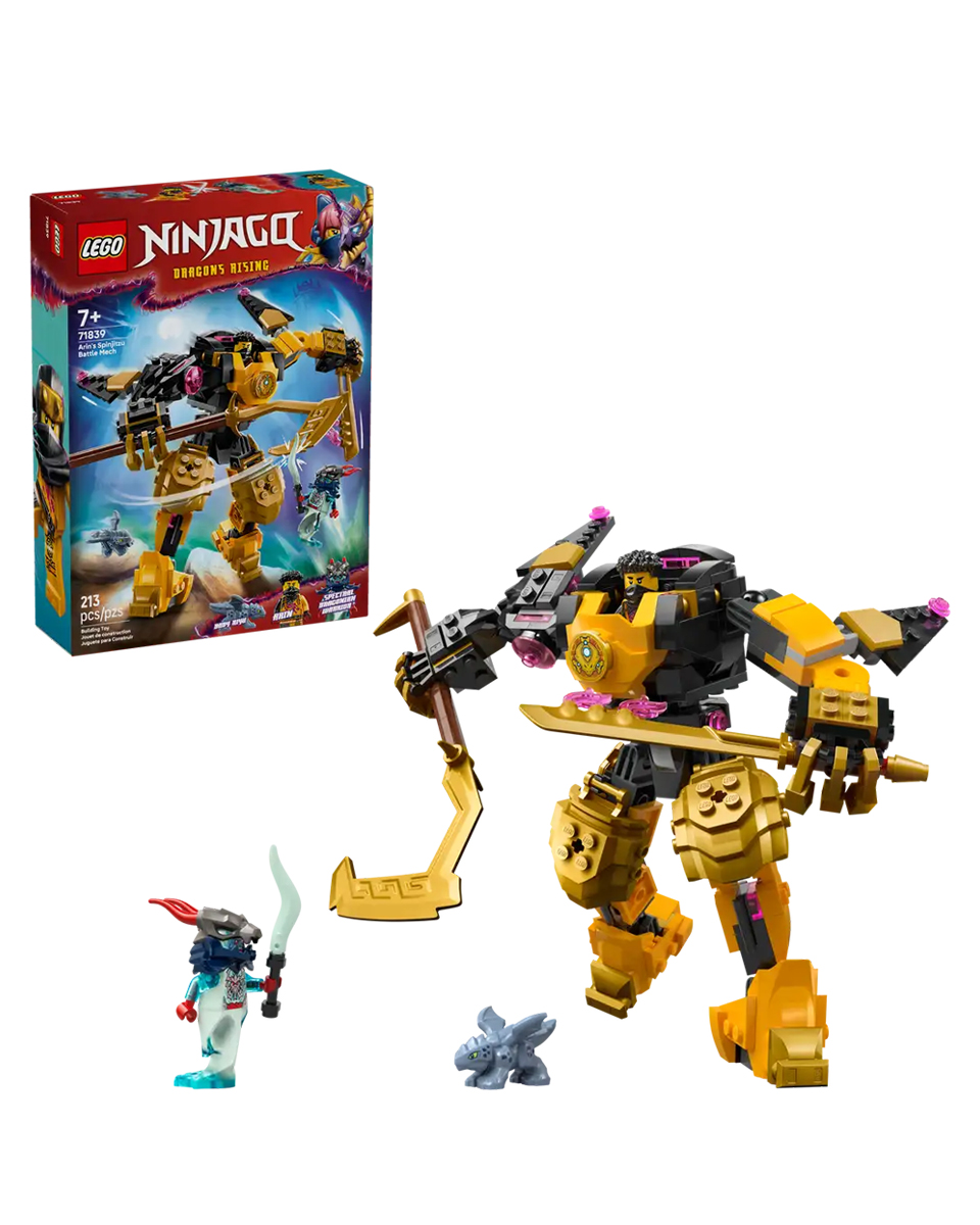 Поклонники ниндзя в возрасте от 7 лет и старше могут разыграть сцены из 3-го сезона телешоу NINJAGO® Dragons Rising с помощью этого боевого робота LEGO® NINJAGO Arin's Spinjitzu. Этот конструктор для детей включает в себя робота NINJAGO с подвижными руками и ногами, которые можно наклонять и поворачивать в разные положения, вращающийся торс, открывающийся сундук, в который можно поместить минифигурку, и 2 больших аксессуара для меча.