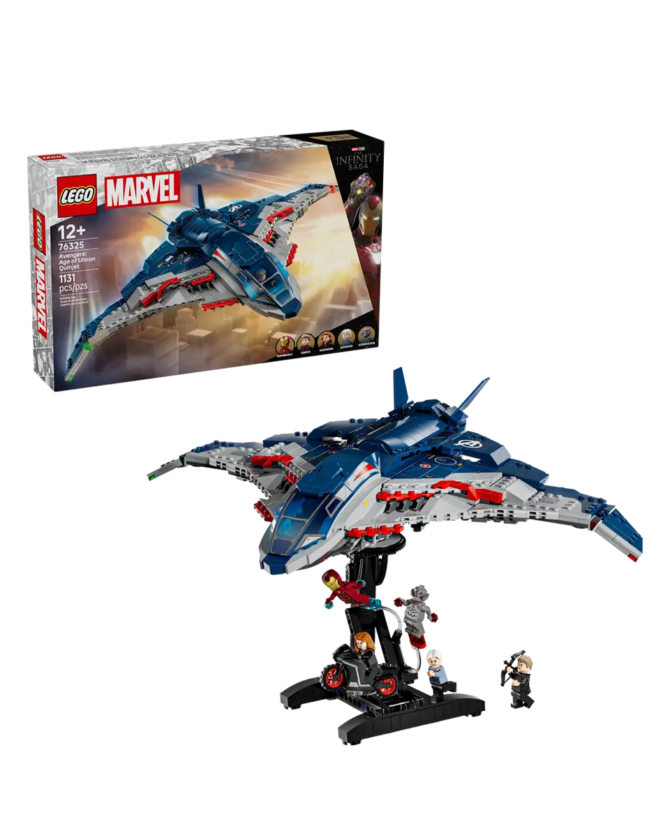 Мстители: Эра Альтрона Квинджет - это коллекционный конструктор LEGO® ǀ Marvel. Этот конструктор LEGO ǀ Marvel, выполненный с достоверными деталями и дополненный минифигурами Мстителей, станет впечатляющим подарком для детей и поклонников супергероев в возрасте от 12 лет и старше.