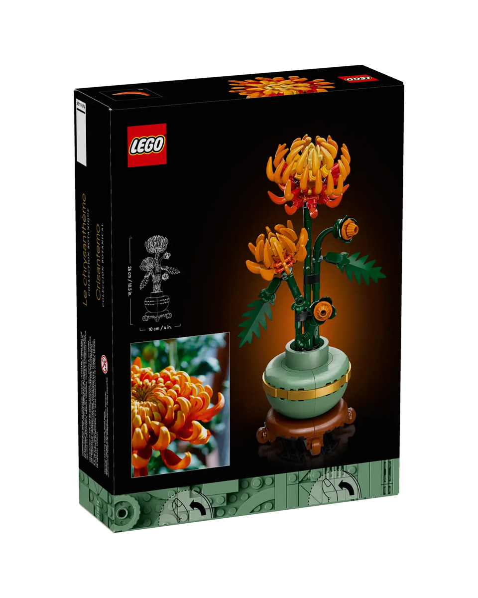 Воспользуйтесь набором для создания цветочного декора LEGO® Botanicals "Хризантема". Хризантема - популярный мотив в традиционном искусстве, символизирующий осень, как часть классического квартета красивых растений, известного как "Четыре джентльмена". Побалуйте себя продуманным строительным проектом или порадуйте любимого человека этой вечной цветочной композицией – идеальной идеей подарка для любого случая.