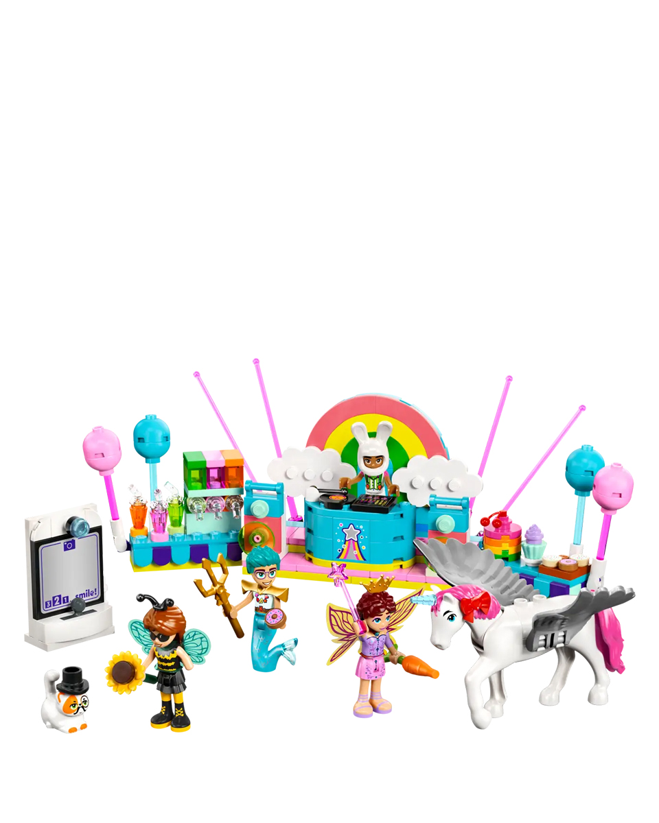 Представляем вашему вниманию детский конструктор LEGO® Friends, вдохновленный историей. В набор LEGO® Friends "Костюмированная вечеринка с единорогом и феей" для девочек и мальчиков от 6 лет и старше входят 4 мини-куклы LEGO Friends, фигурка кошки и фигурка лошади. В нем также есть множество симпатичных аксессуаров для вечеринок для ролевых игр.