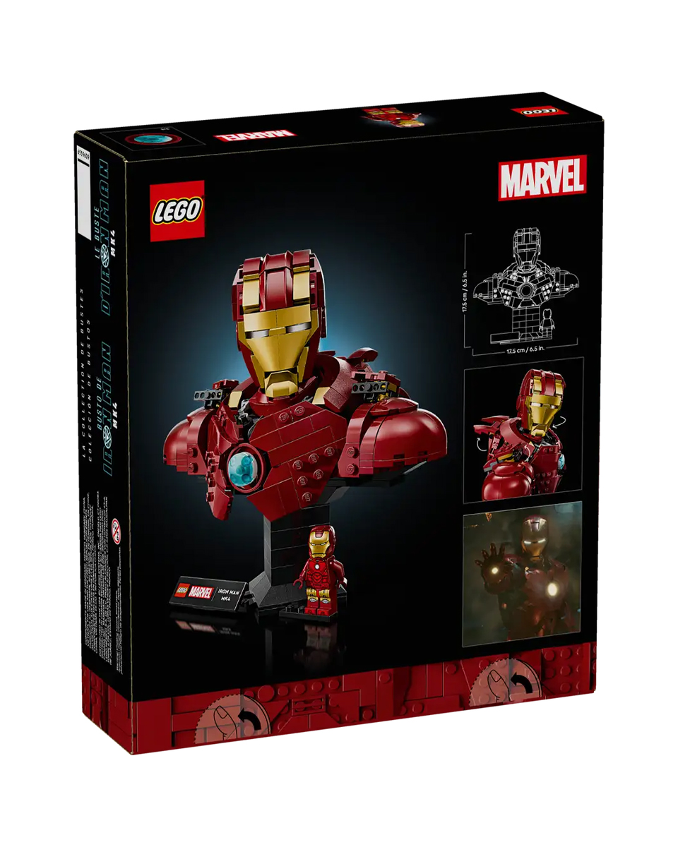 Этот набор для сборки супергероя повторяет культовую броню MK4, которую носили в фильме студии Marvel "Железный человек 2". Набор для сборки модели, включает в себя два регулируемых щитка на спине, две выдвижные наплечные пушки и вращающуюся головку. На прочном основании расположена печатная табличка с именем и съемная минифигурка Железного человека. Этот увлекательный и полезный опыт сборки дополняется цифровой версией инструкции по сборке, которую можно найти в приложении LEGO Builder.