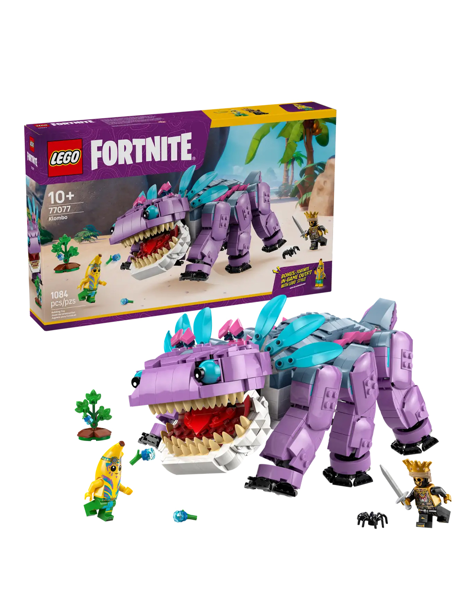Кломбо - это большое существо из видеоигры LEGO Fortnite, и этот конструктор позволяет мальчикам и девочкам воссоздать его из кубиков LEGO. Они весело проведут время, собирая игрушку из видеоигры Fortnite, прежде чем увидят все интересные детали, включая подвижные лапы, открывающийся рот и вращающийся хвост. В набор также входит маленький кустик Кломберри со съемными ягодами. В набор также входят минифигурки островных приключений Пили и Оро, которые прикрепляются к спине Кломбо, поощряя творческие ролевые игры.