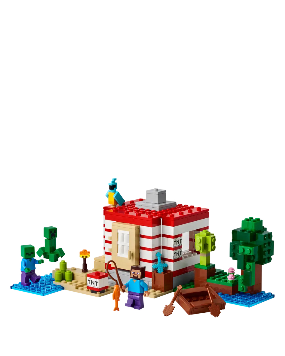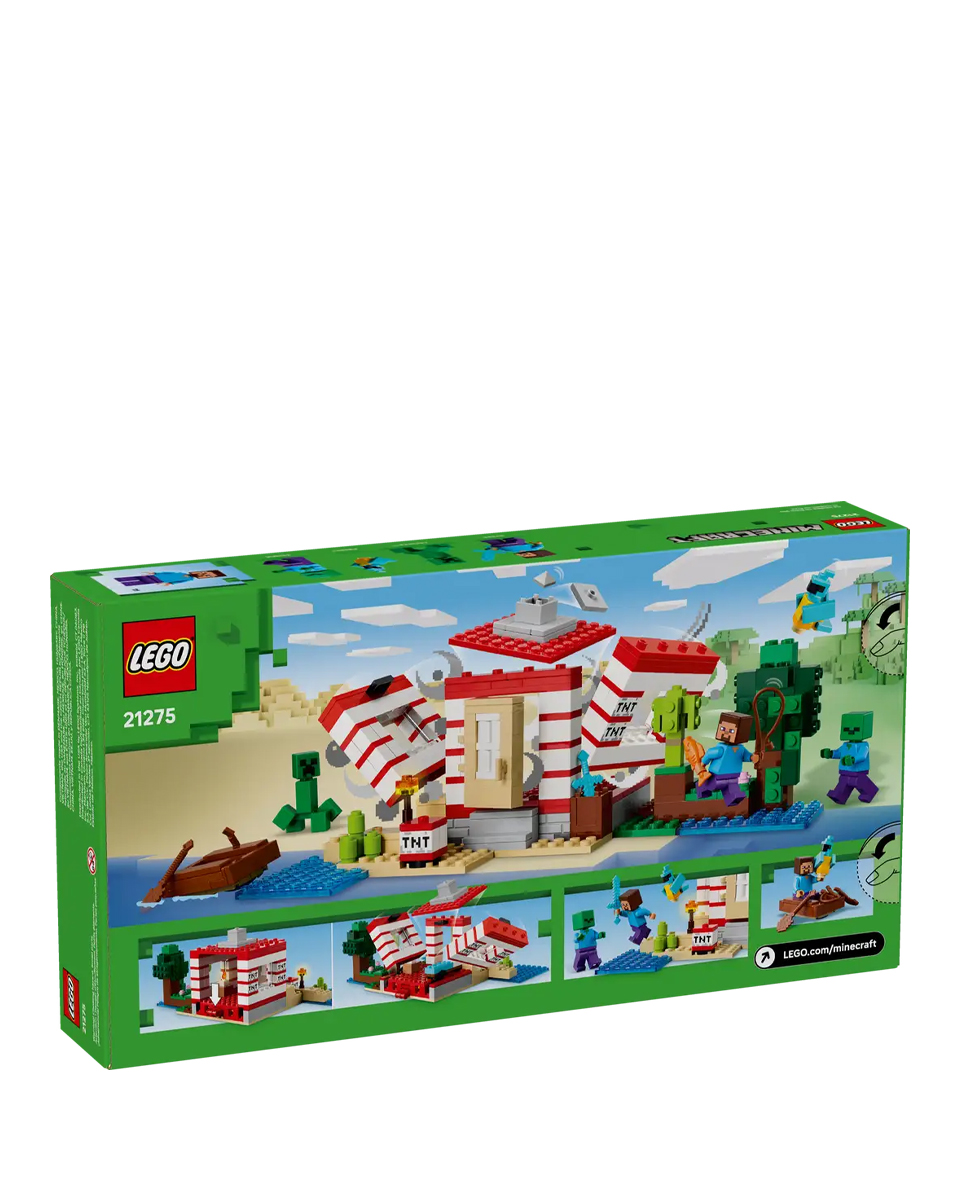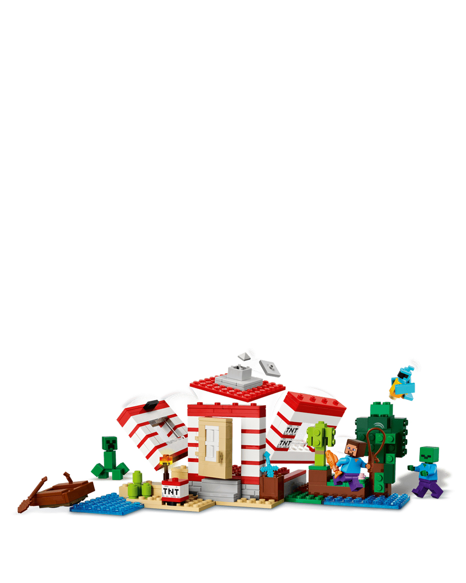 Сборный дом расположен в биоме джунглей Minecraft и выглядит как масштабная версия культового игрового элемента TNT. Переключатель сбоку позволяет детям активировать функцию взрыва TNT, которая разрушает весь дом. Когда пыль уляжется, дети смогут перестроить дом, чтобы он был готов к их следующему приключению. Минифигурки Стива, Крипера™ и зомби вдохновляют на творческие игры и сражения. Оригинальные аксессуары LEGO Minecraft включают лодку, удочку, рыбу, попугая и листву джунглей. Приложение LEGO® Builder доставляет детям дополнительное удовольствие от использования своего устройства для увеличения и поворота моделей в 3D.