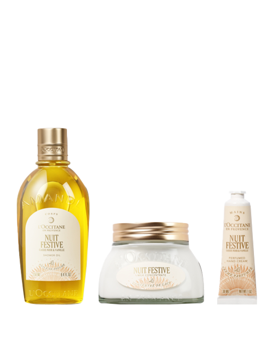 В набор входит: масло для душа 250 мл + молочный концентрат 200 мл + крем для рук 30 мл,