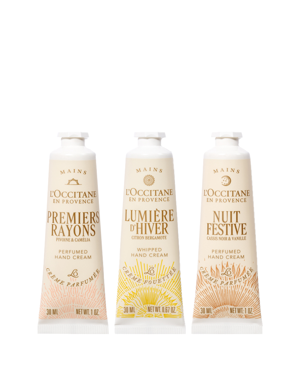 В набор входит: крем для рук Premiers Rayons 30 мл + крем для рук Lumiere D'Hiver 30 мл + крем для рук Nuit 30 мл.