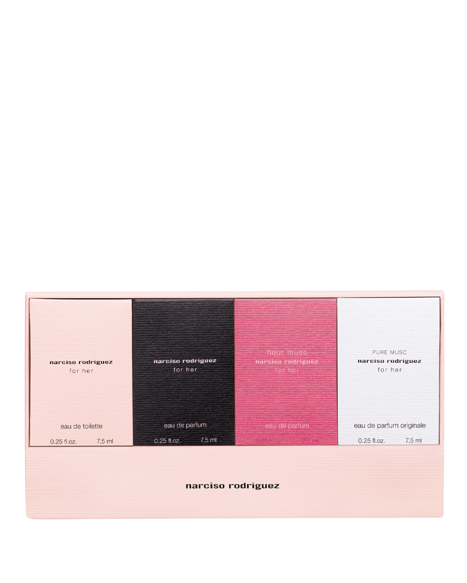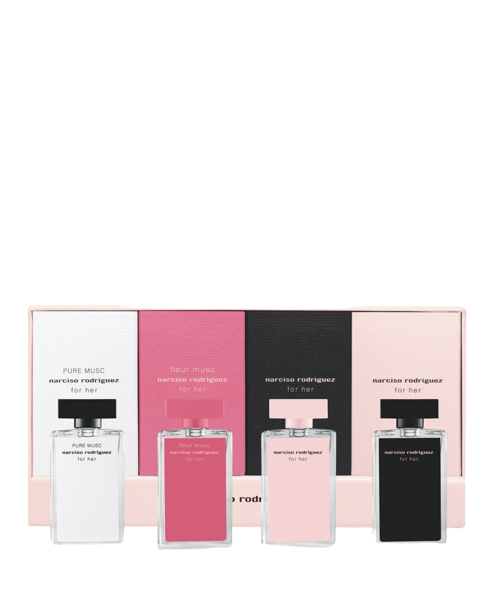 В набор входит: парфюмерная вода For her 7,5 мл + туалетная вода For her 7,5 мл+ парфюмерная вода Pure Musc 7,5 мл + парфюмерная вода Fleur Musc 7,5 мл.