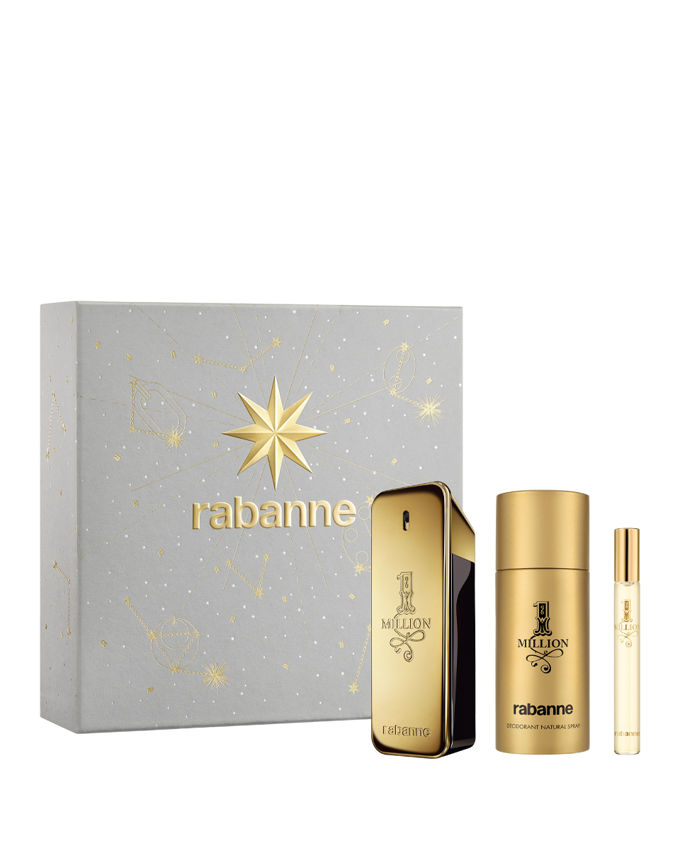 В набор входит: туалетная вода Paco Rabanne 1 Million 100 мл + дезодорант-спрей Paco Rabanne 1 Million 150 мл + туалетная вода Paco Rabanne 1 Million 10 мл.