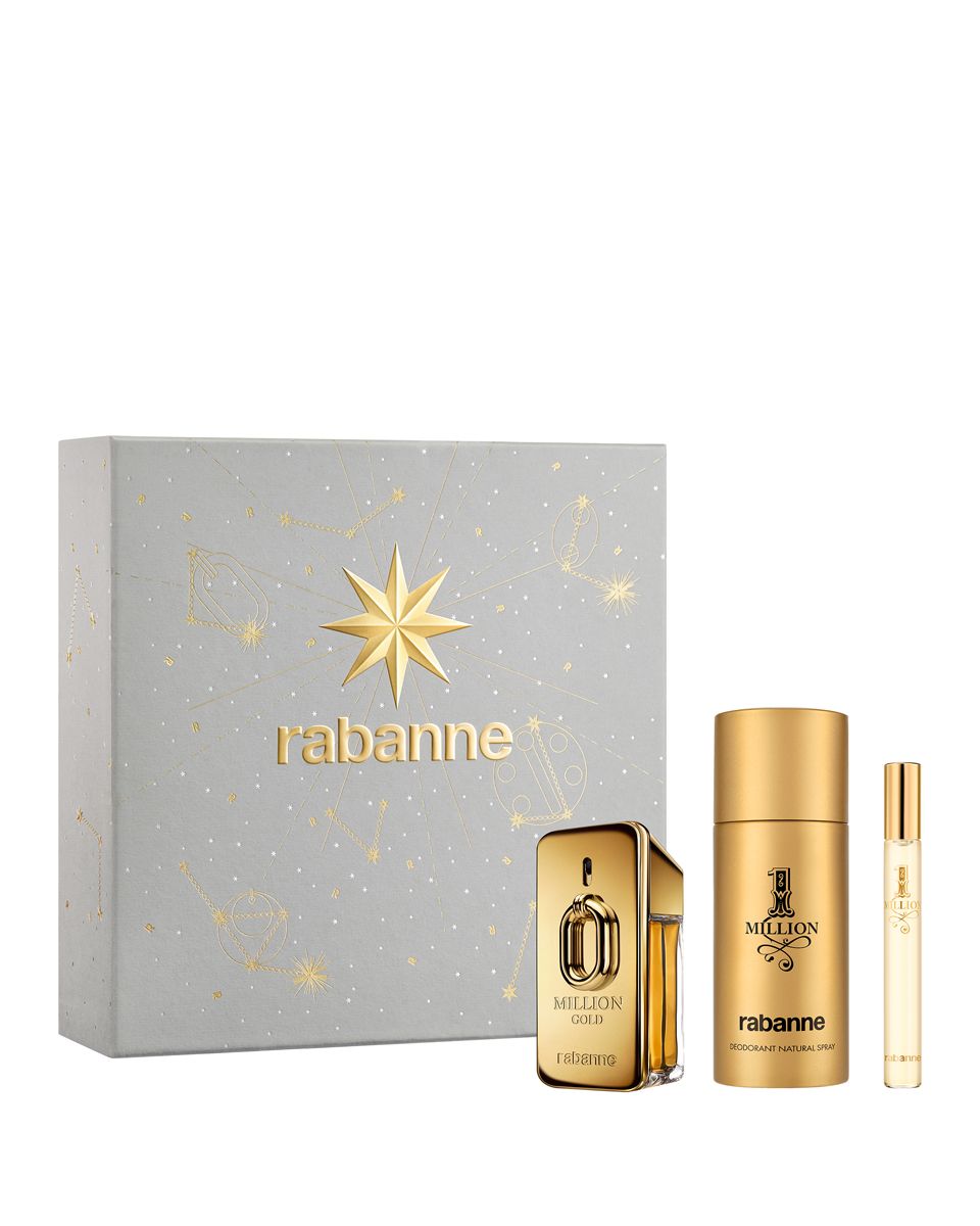 В набор входит: парфюмерная вода Paco Rabanne Million Gold Intensive 50 мл + дезодорант-спрей Paco Rabanne Million Gold 150 мл + туалетная вода Paco Rabanne Million Gold 10 мл.