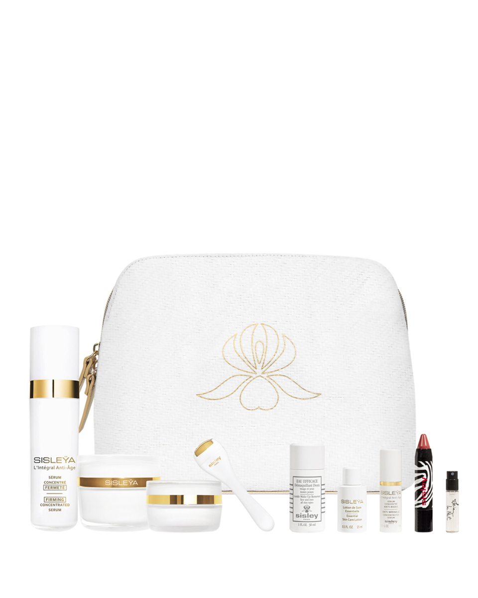 В набор входит: укрепляющая концентрированная сыворотка 30 мл + крем 50 мл + крем для контурирования губ и глаз 15 мл + средство для массажа лица Ridoki + средство для снятия макияжа EU Effective для лица и глаз 30 мл + лосьон для эфирного ухода за кожей Leya Essential 15 мл + укрепляющая концентрированная сыворотка 5 мл + бальзам для губ Phyto-Lip Twist Lip Balm № 11 + парфюмированная вода Izia la Nuit 1,8 мл.